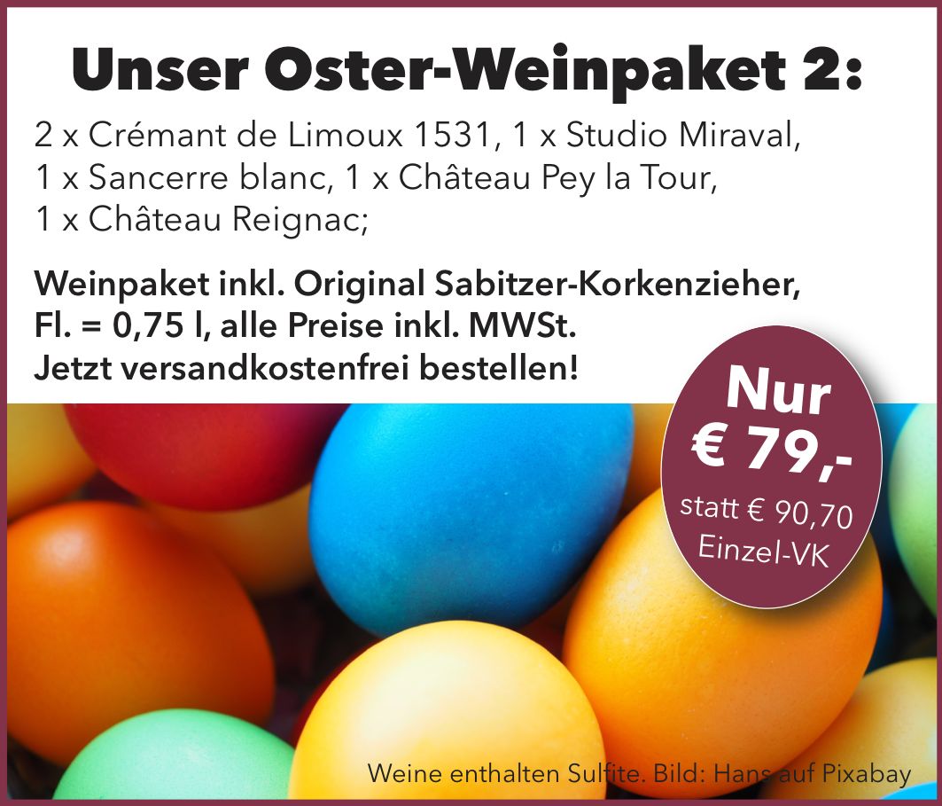 Dieses 6-teilige, ausgesuchte Oster-Weinpaket beinhaltet: