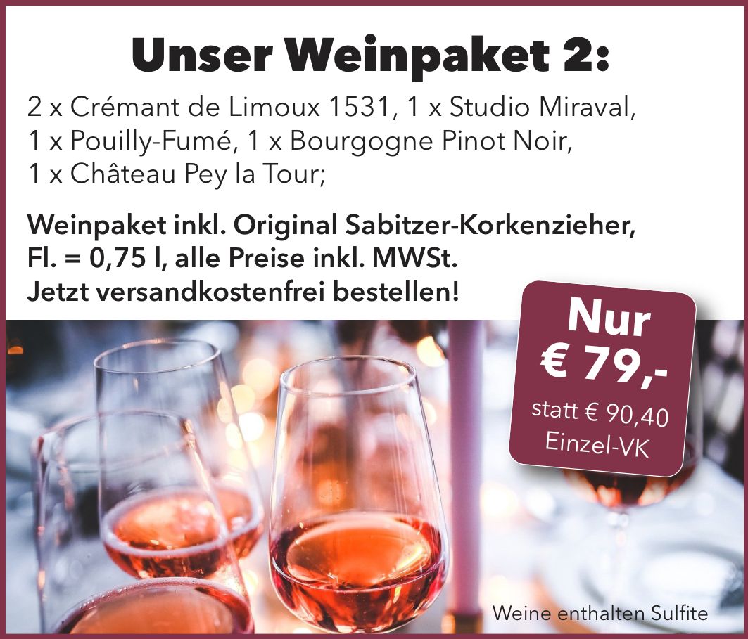 Dieses 6-teilige, ausgesuchte Weinpaket beinhaltet: